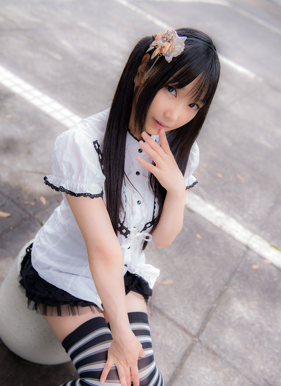 • 縞ニーソックス_白黒_しましま_絶対領域17