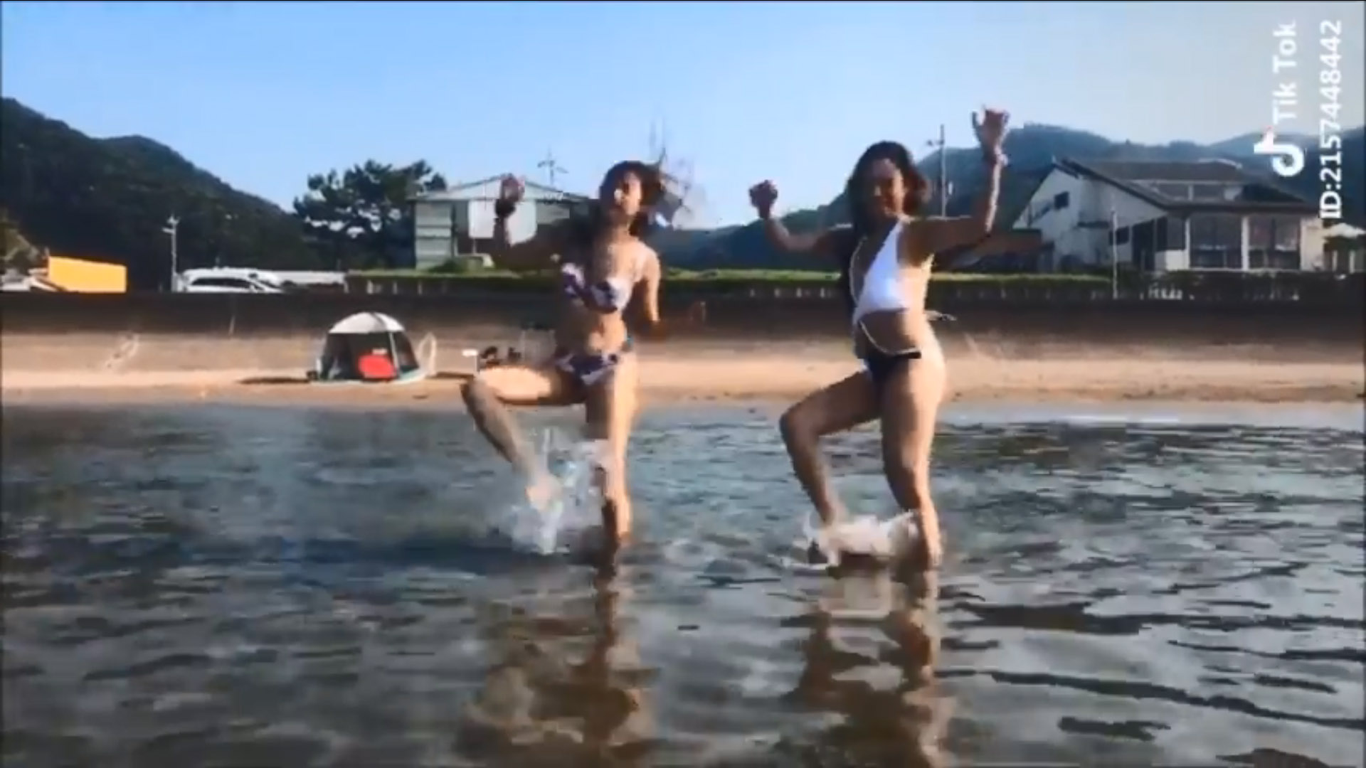 中高生のスマホにはもれなくインストールされていると言っても過言ではないアプリ『tiktok』を夏の海やプールで利用したJC・JKたちの水着姿が見れるYouTubeのキャプ画像。