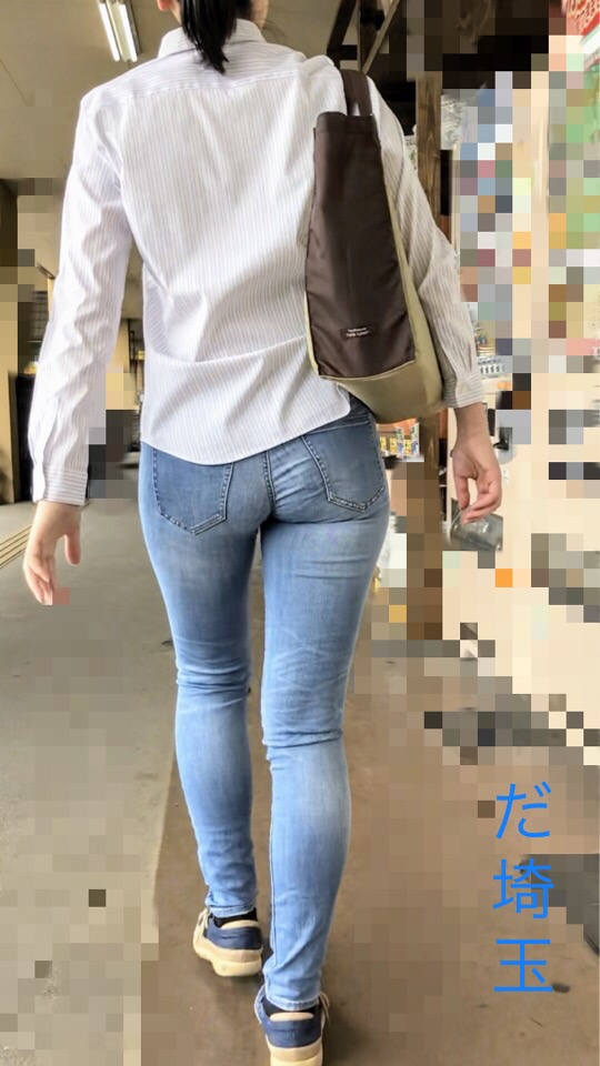 尻の形や大きさ、そして太ももの太さが明確にわかってしまうが何故か大流行しているスキニータイプの青デニムを履いた一般女性たち…真後ろを歩く人はスマホでニュースやゲームをしてるふりして、バッチリカメラアプリを開き背後から撮影…完全に油断したデカ尻女性を街撮り。