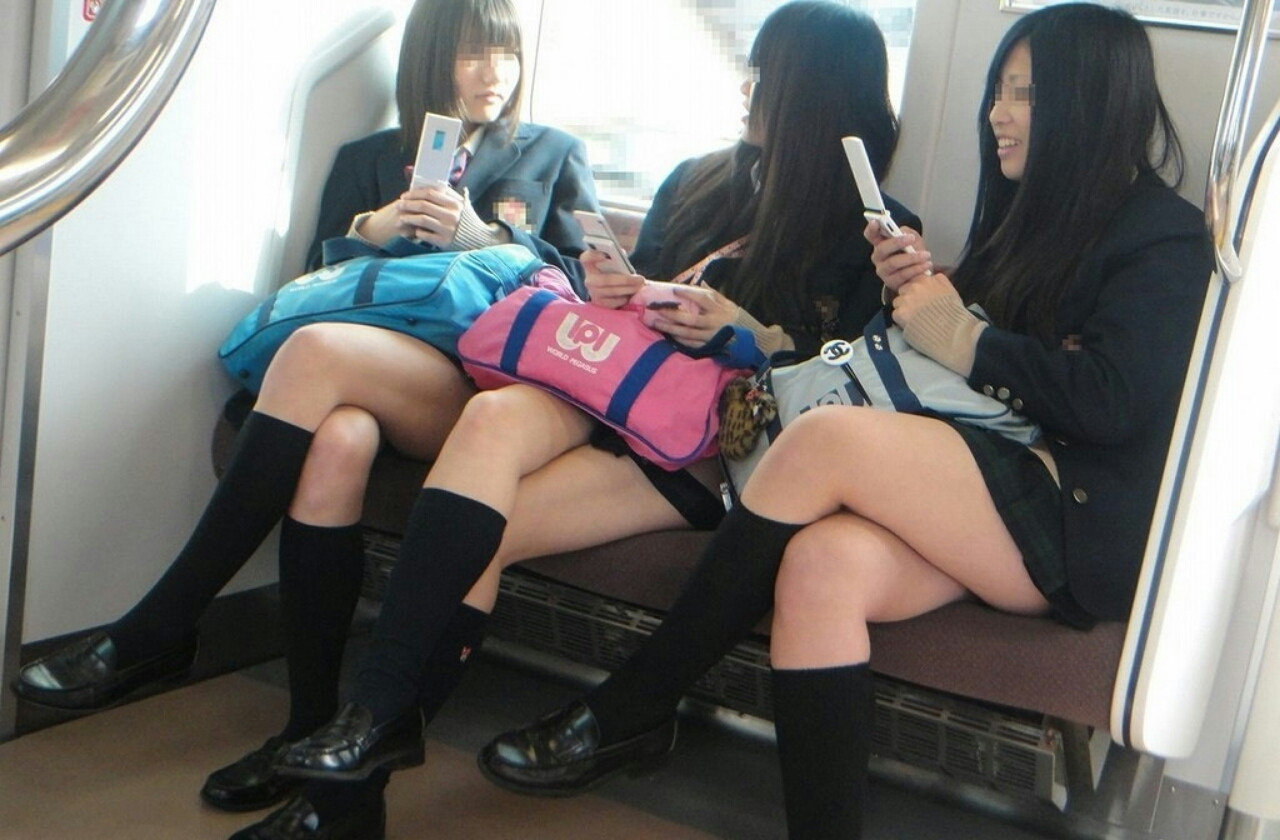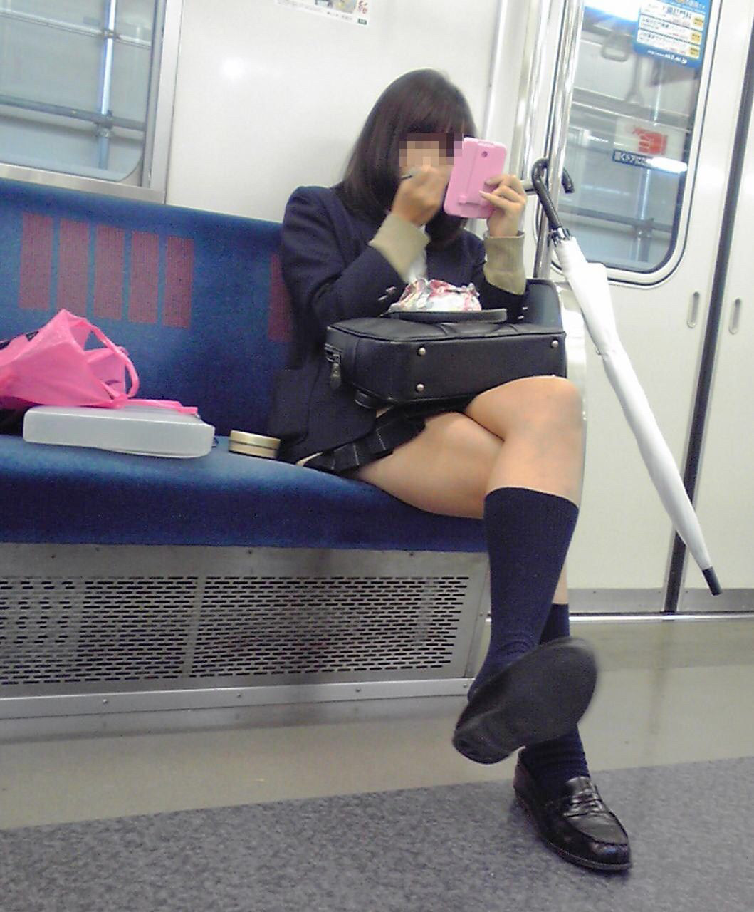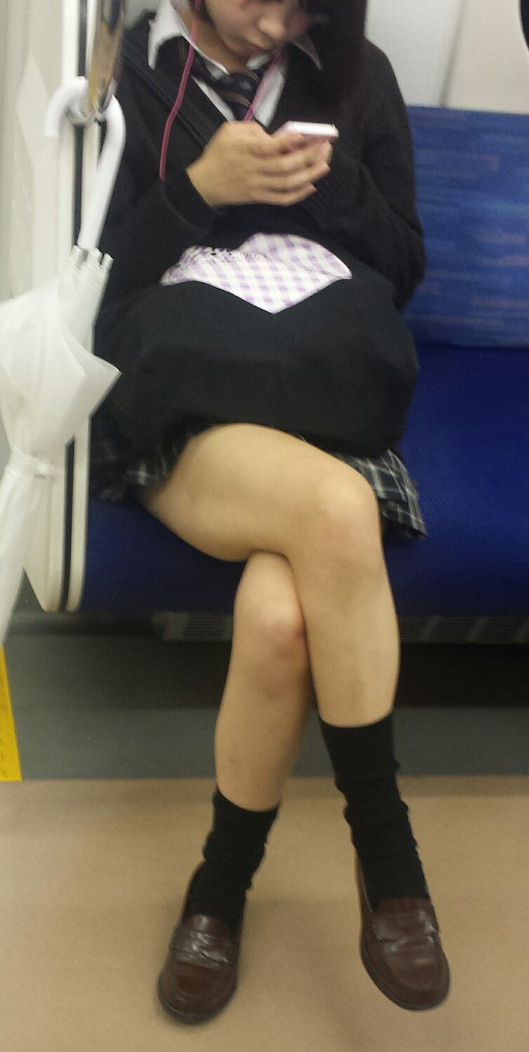 電車内で足組をする女子校生を盗撮